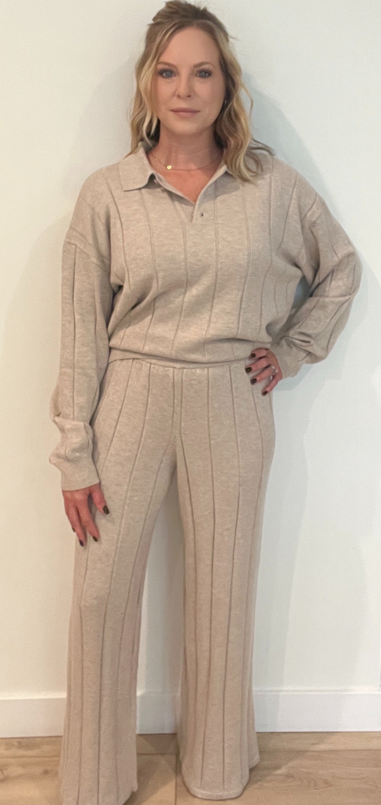 The Birchbend Ribbed Pants are a relaxed-fit lounge piece crafted from wide ribbed midweight knit, featuring an elastic waistband and straight leg. Pairs perfectly with the Birchbend Ribbed Sweater.  Fits true yo size.  Model is wearing a size small.
